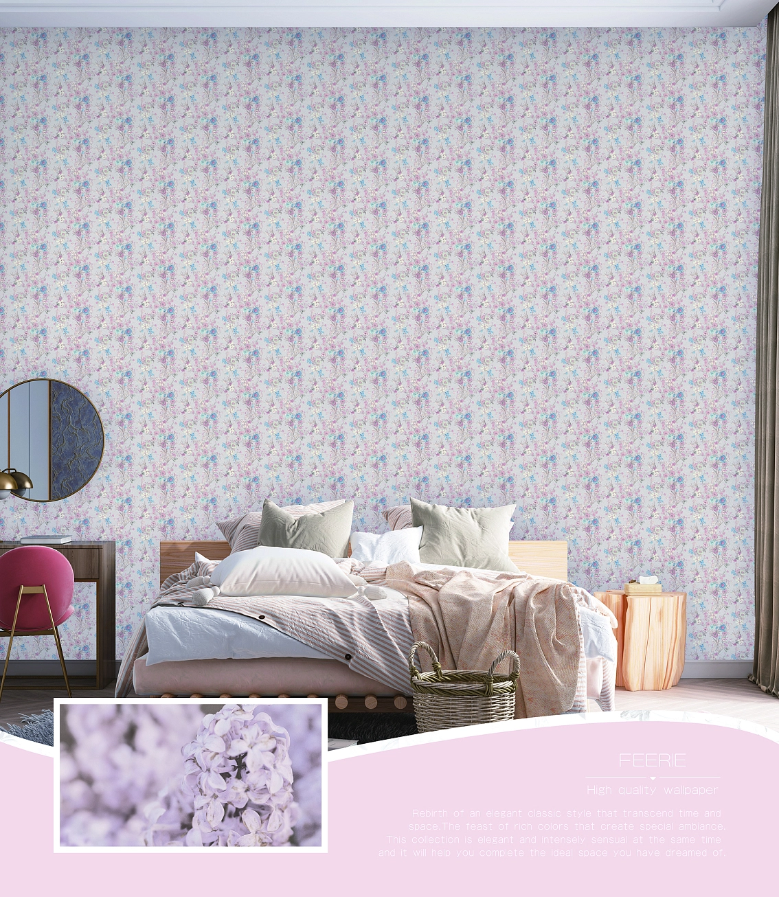Цветочный рисунок в нежных оттенках розового придаст вашему пространству легкость и свежесть. Флористический стиль обоев Solo Feerie 3503-1 подчеркнет вашу нежность и женственность, добавив интерьеру нотку элегантности. Сэты номенклатуры Цветочная поляна Feerie дополнят обои и создадут завершенный образ в вашем помещении.